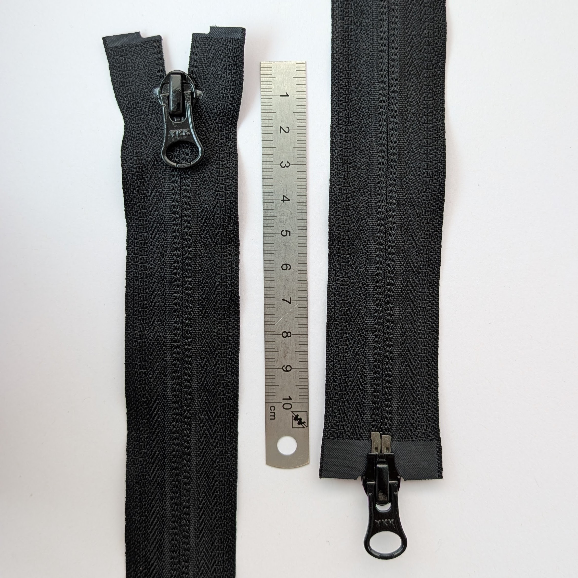Fermeture YKK à spirale, séparable, double curseur.
